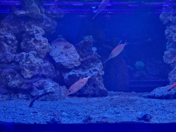 Bezüglich Futter. In der Beschreibung steht Plankton, als Nahrung des Knallkrebses. Wir haben aber schon öfters beobachten können, wie unsere Knallkrebse sich an Schnecken vergreifen. Dabei werden auch Schnecken erbeutet, die deutlich größer sind, als der Krebs selber. Am liebsten sind den Knallkrebsen Schnecken, der Gattungen Turbinaria und Patella, also Turbanschnecken und Napfschnecken, welche von den Krebsen sogar von der Aquarienscheibe weggeknallt werden. Wenn die Schnecken, dann auf dem Rücken liegen machen sich die bereits wartenden Felsengarnelen (Palaemon) über die Schnecken her und für die Knallkrebse fällt auch das ein oder andere Stückchen ab.