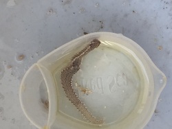 Mein Becken hab ich schon seit ca. 2 Jahren, vor einem halben Jahr musste ich es komplett leer machen (Unterschrank war marode). Wieso ich damit anfangen? In der ganzen Zeit, habe ich dieses Tier nicht gesehen. Ich schaue auch nachts in mein Becken!! Erst gestern, als ich paar Steine umgeräumt habe (habe vermutlich zudem noch einen anderen Parasiten), und ich den untersten Stein angehoben habe, kam es rausgeschossen. Das Tier ist echt schnell und passt in die kleinste Ritze. Ich habe es nicht geschafft es mit einer Pinzette rauszunehmen. Da ich aus Erfahrung immer alles erst raushole und die ID bestimme oder bestimmen lasse,-) habe ich erst mal den Stein rausgeholt und festgestellt, dass es sich hier um diesen Kameraden handelt. Schnecken sind bei mir auch nicht lange geblieben, Turboschnecken habe ich keine mehr und sonst nur bis zu einer Größe von ca 1-2 cm, die Größeren verschwinden immer. Habe immer die Einsiedler vermutet. Was es sonst noch gefressen hat, kann ich nicht sagen, ich habe aber auch länger keine Borstenwürmer mehr gesehen. Es stand jetzt die ganze Nacht in einen Eimer und das Wasser ist Ausgabe. 18 Grad abgekühlt und es lebt immer noch. Da ich den Spalt gesehen habe, wo es sich versteckt hat, habe ich eine Pinzette in die Ritze gesteckt, in der Hoffnung dass es rauskommt. Als ich die Pinzette rausgeholt habe, war die Spitze komplett mit einem zähen, durchsichtigen Schleim überzogen, der sich auch nicht abschütteln ließ. Fazit: ich werde das Tier definitiv nicht wieder in mein Becken tun.