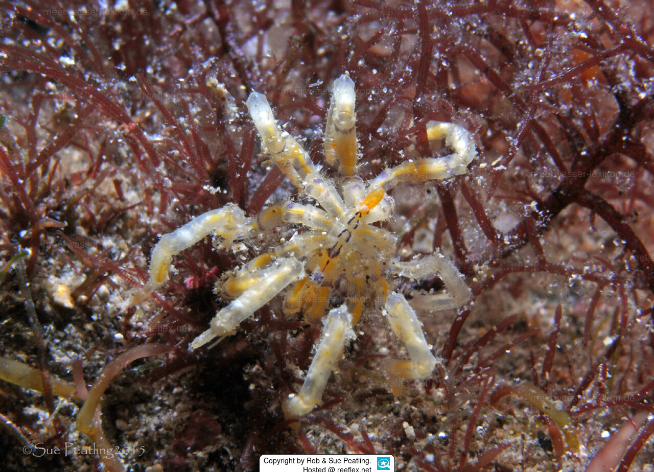 Die bis zu 2cm groß werdende Asselspinne Pallenopsis macneilli ist in Australien beheimatet und scheint nur dort vorzukommen. Der Körper ist gelbbraun bis orange, mit violetten bis blauen Streifen entlang des Rückens. Die Asselspinne hat acht Beine, jedes meist mit einem einzigen blauen bis violetten Streifen.
