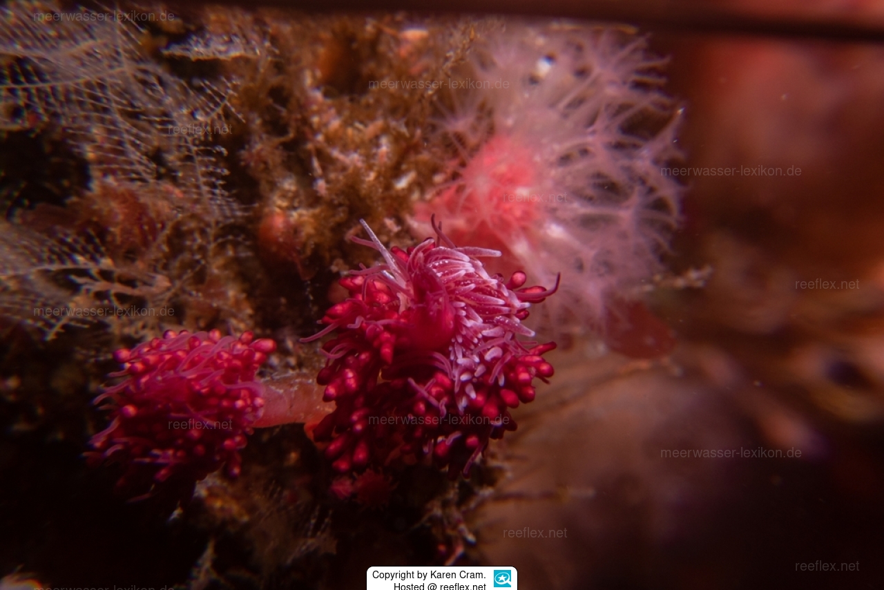 Die Verdauungsdrüse in den Cerata ist dunkel weinrot bis violett und die Hüllen können pfirsichfarben sein. Die Cerata haben eine unterbrochene Linie aus undurchsichtigem weißem Pigment, die manchmal als Fleckenlinie an ihren Außenseiten erscheint, und haben aufgrund dichter subepidermaler Drüsen weiße Spitzen.