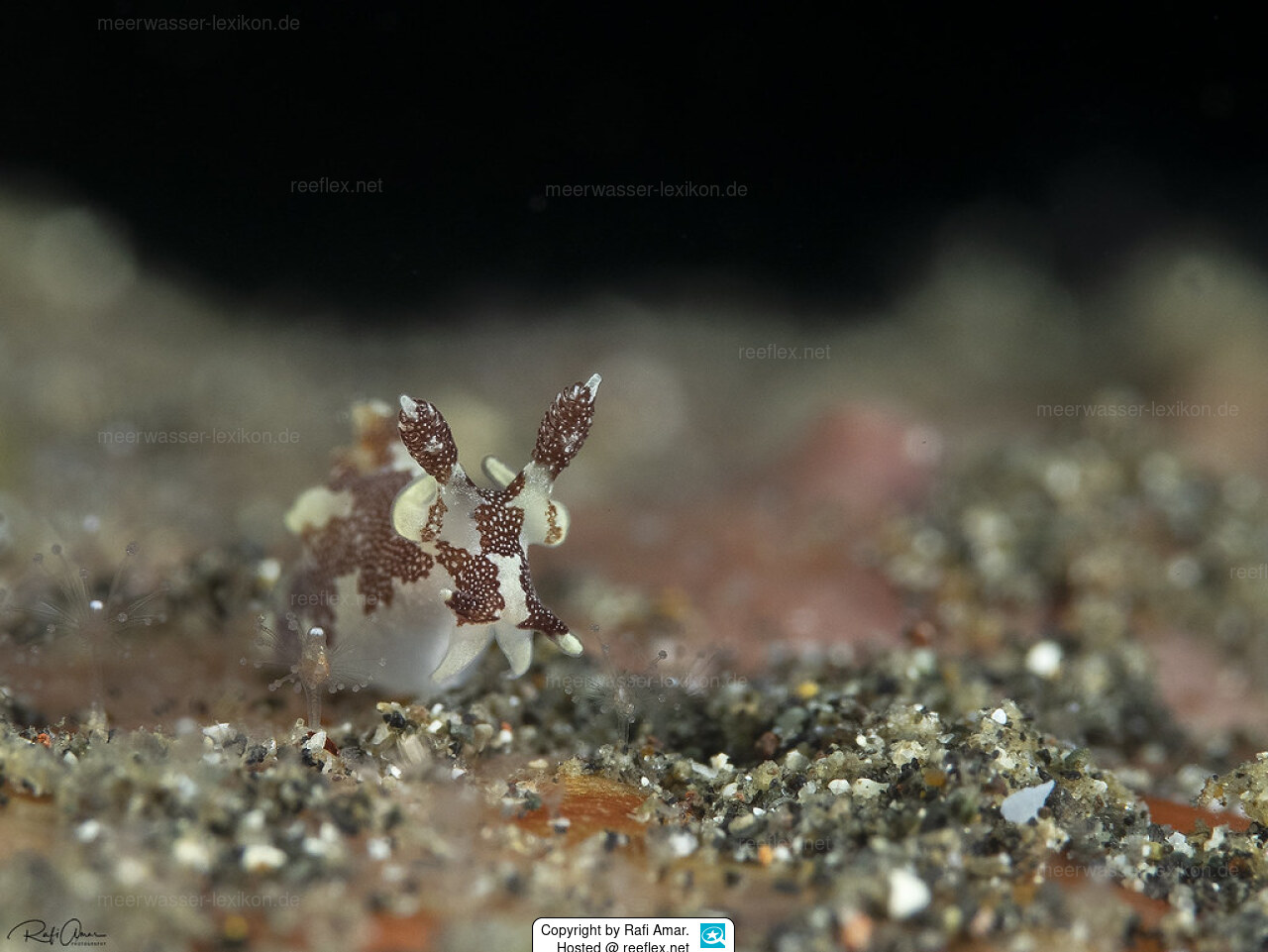 Die oralen Tentakeln sind an ihrer Basis gefärbt und an der Spitze undurchsichtig grau. Ebenso sind die vorderen Ränder des Fußes, die sich seitlich als verlängerte Anhänge erstrecken, an ihrer Basis gefärbt und an ihrer Spitze undurchsichtig grau. Die Kieme besteht aus drei großen und stark verzweigten Elementen, die dieselbe Farbe wie der Körper haben.