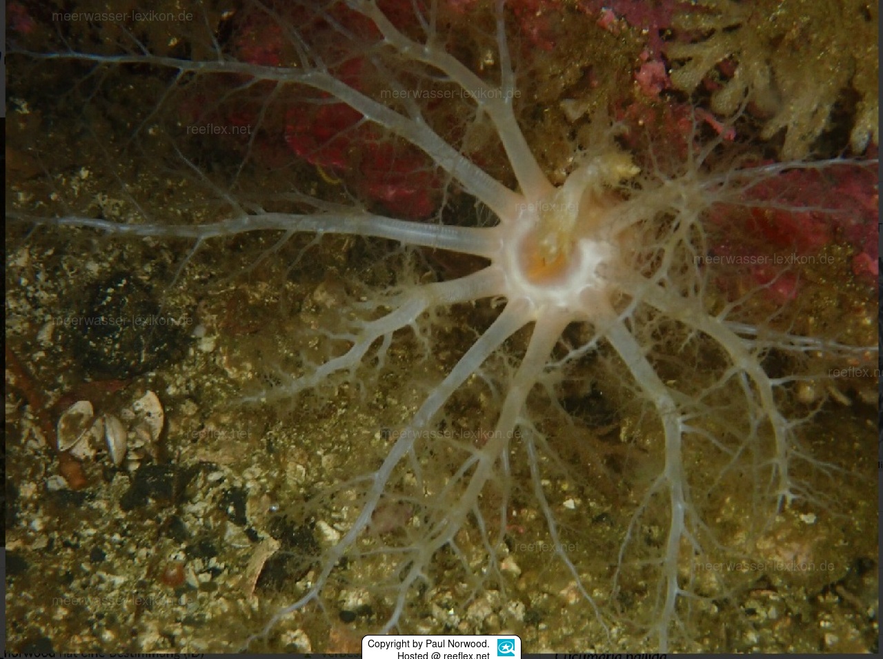 Diese Seegurke hat 10 zarte, blasse, buschige und gleichlange Bukkal-Tentakeln und 5 Reihen Röhrenfüße, wobei die ventralen Reihen besser entwickelt sind.