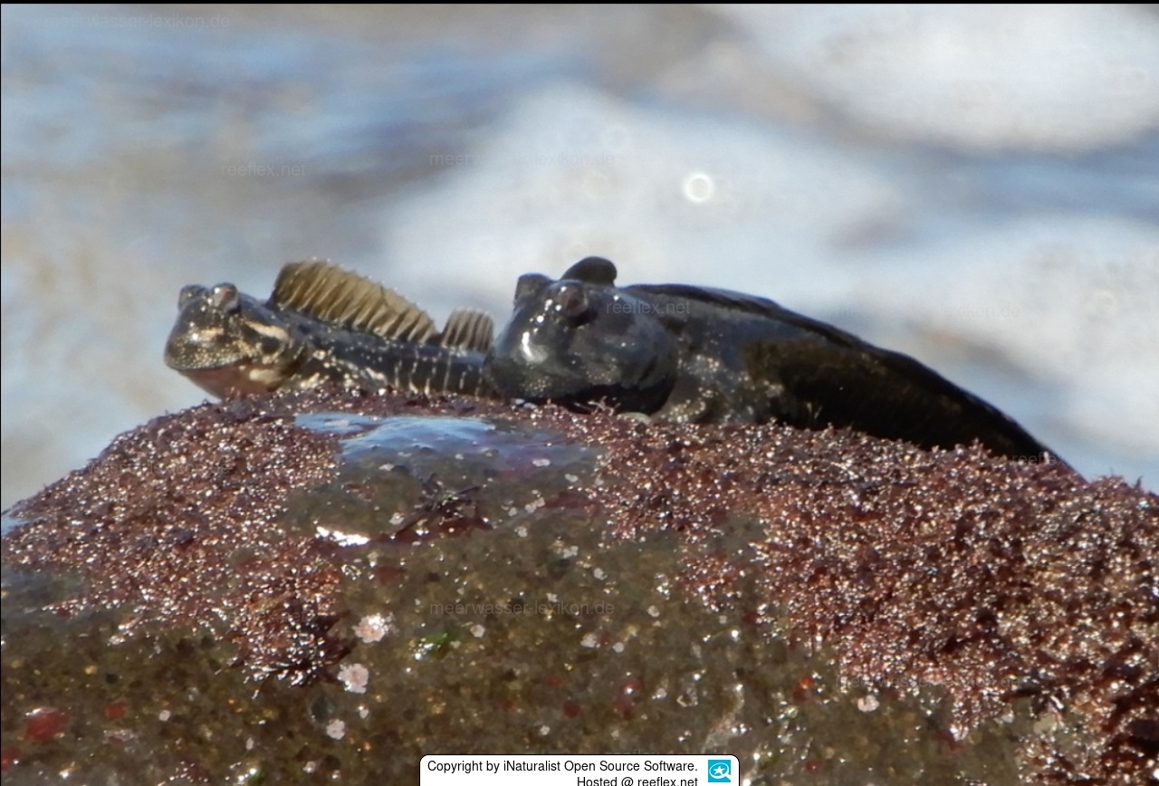Die Besonderheit: Der Schleimfisch bewegt sich aktiv zwischen Felsenbecken hin und her und ist in der Lage, außerhalb des Wasers Luft. zu atmen.
