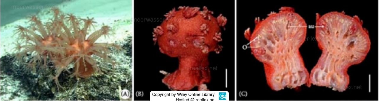 Alle Siphonozooide sind auf das Blütenkopf begrenzt, fruchtbar und zahlreich.