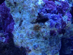 Diese kleinen Korallen (insg. 11 Stück plus 2 in gelb) entwickelten sich aus meinem Lebendgestein. Sie nehmen an Größe zu und haben ohne Tentakel mittlerweile einen Durchmesser von 6-8mm, mit Tentakel gut 1,5cm.