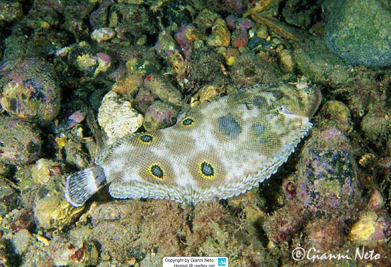 Die Augenfleck-Seezunge ist ein sehr hübscher Plattfisch, den man sehr gut an den vier großen, auffälligen gelbumrandeten Augenflecken auf der Körperoberseite erkennen kann.