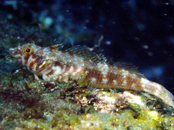 Der Schleimfisch hat eine braun/rötlich marmorierte, fleckige Färbung und einen kräftigen schwarzen Fleck an der Schwanzwurzel.