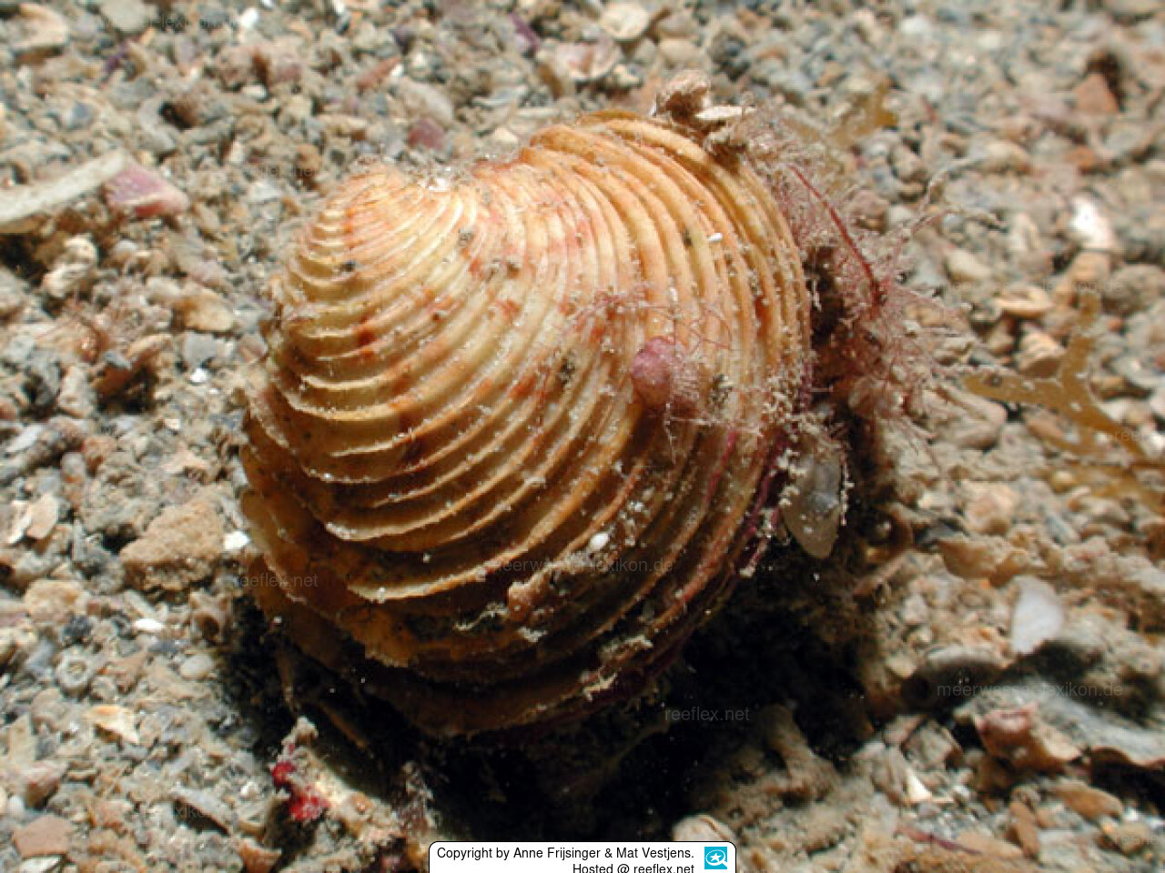 Venus casina gehört zur Familie Veneridae, den Venusmuscheln. Venusmuscheln haben rundliche bis dreieckige, oft farbige Schalen.Sie sind weltweit in warmen und gemäßigten Meeren vertreten und leben überwiegend in sandigen Böden.