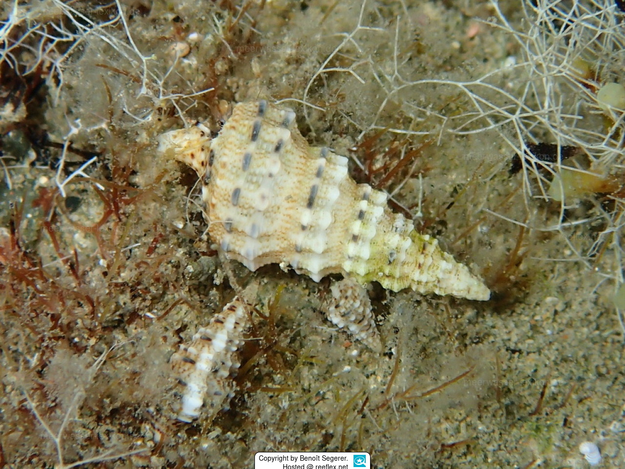 Cerithium scabridum gehört zur Familie Cerithiidae, den Hornschnecken. Die Gehäuse variieren stark in Größe und Muster, weshalb eine Bestimmung nicht immer ganz einfach ist.
