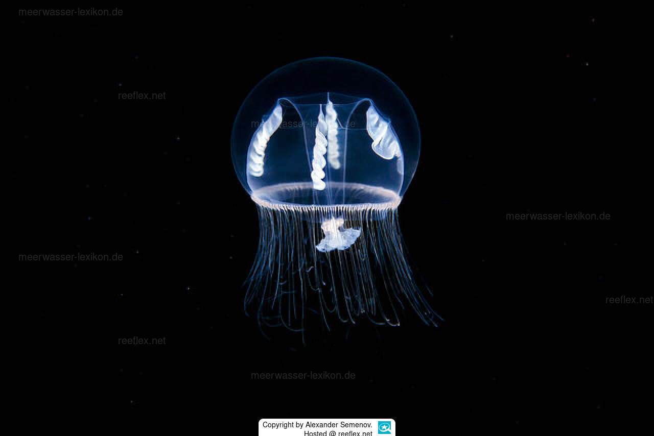 Diese unscheinbare Hydromeduse wird wegen ihrer transparenten Glocke und der relativ geringen Größe leicht übersehen.