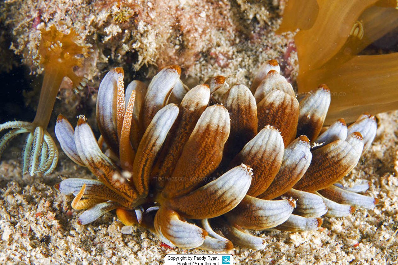 Rhinophoren und Cerata habe die gleiche Färbung wie der Körper. Die Cerata werden zur Spitze hin deutlich heller/weißer. Die Cerata weisen Längslinien auf, die bei stark aufgeblasenen Cerata nicht mehr sichtbar sind. Der Grund warum die Cerata manchmal deutlich schmaler oder aufgeblasener sind, ist nicht bekannt.