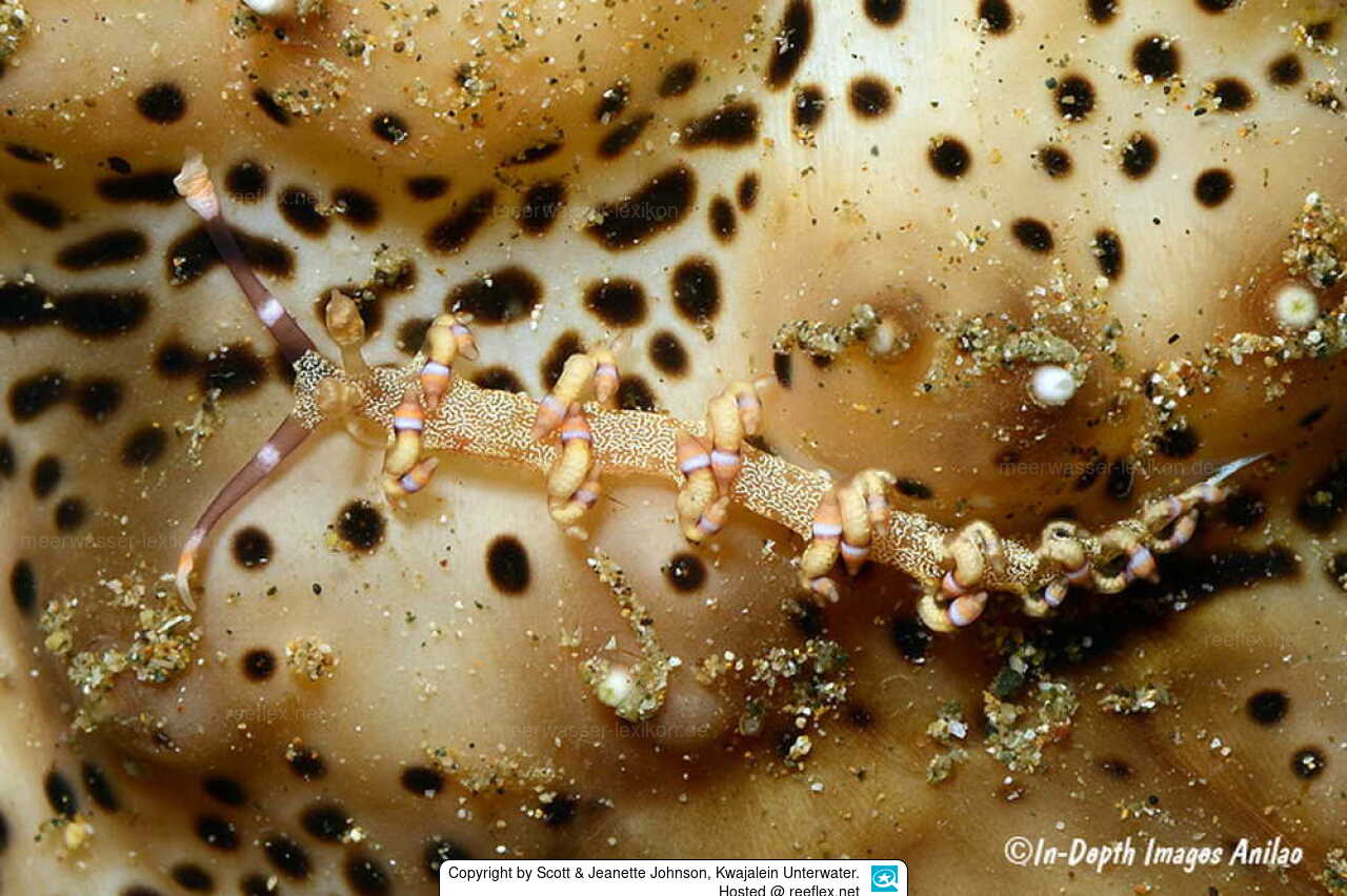Das besondere Kennzeichen dieser Fadenschnecke sind die langen, an den Enden paddelförmig abgeflachten mündlichen Tentakel. Die Körpergrundfarbe ist granuliert weiß.