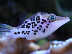 Mein C. leoparda ist noch sehr klein (4cm). Beim Einsetzen in meine Riffbecken wurde er bei mir stundenlang von meinem ausgewachsenen H. chrysus Lippfisch-Mann attackiert. Erst dachte ich, dass der Lippfisch die Zeichnung als Strudelwürmer interpetiert. Aber er ließ nicht von ihm ab, so dass der C. leoparda ins Seepferdchenbecken umziehen musste.