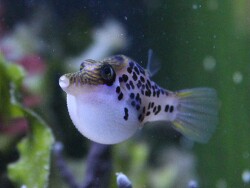 Übrigens findet mein Kugelfisch die Jagd auf Futtergarnelen sehr interessant.