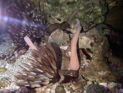 Ich habe 3 Muschelsammlerinnen, die alle am Lebendgestein fest sitzen. Bei einer konnte ich drei Palpen am Röhrenende sehen.