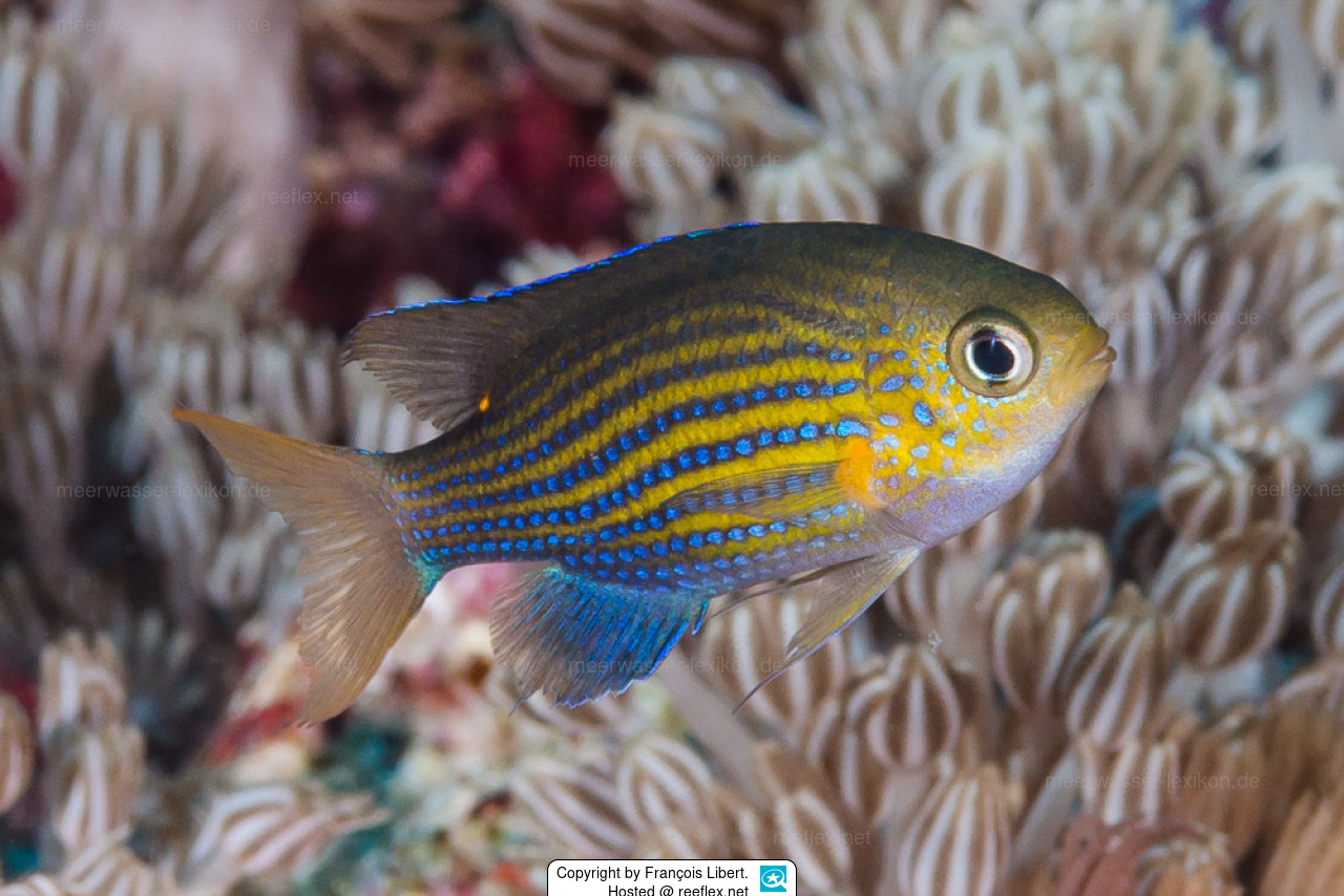 > Pisces (Superclass) > Actinopteri (Class) > Perciformes (Order) > Labroidei (Suborder) > Pomacentridae (Family) > Chromis (Genus) > Chromis lineata (Species)