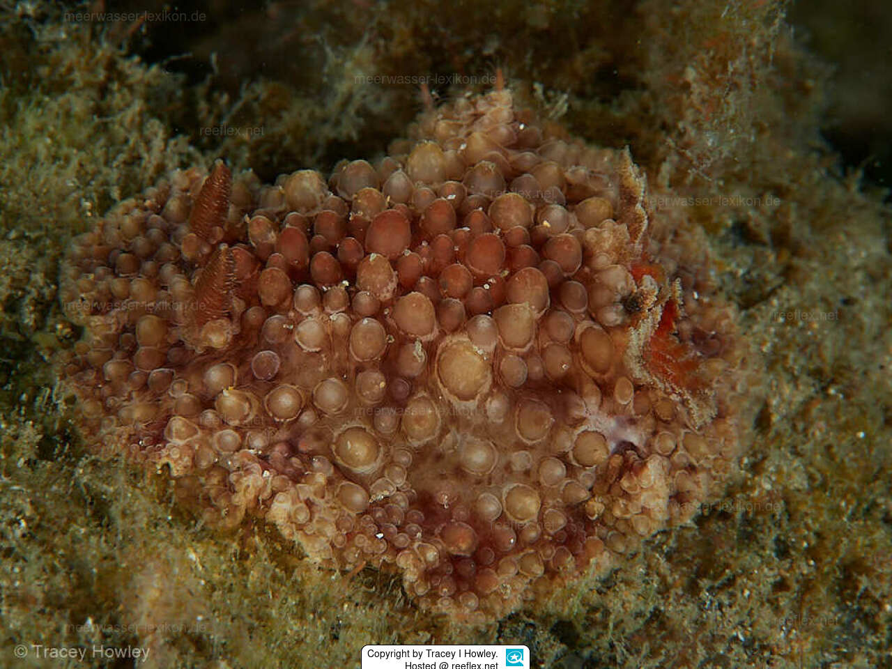 Der Mantel ist dicht mit perlenähnlichen Papillen bedeckt, außer hinter den Rhinophoren, wo die Papillen viel kleiner sind oder ganz fehlen können. Der Mantel ist meist braun gefleckt oder gelbbraun,wobei es auf der Körpermitte einen Streifen gibt der deutlich dunkler und anders als der übrige Mantel gefärbt ist . Dort sind auch weniger und kleinere Papillen.