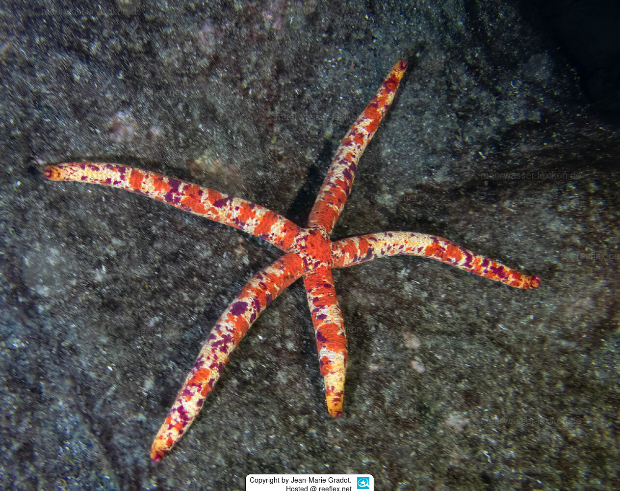 Farbe orange, beige oder creme mit unregelmäßigen roten oder rötlichen Flecken. In schattigen Bereichen tagaktiv, ansonsten eher nachtaktiv. Typischer Suspensionsfresser und häufig auf Gestein mit verkrustende Organismen anzutreffen.