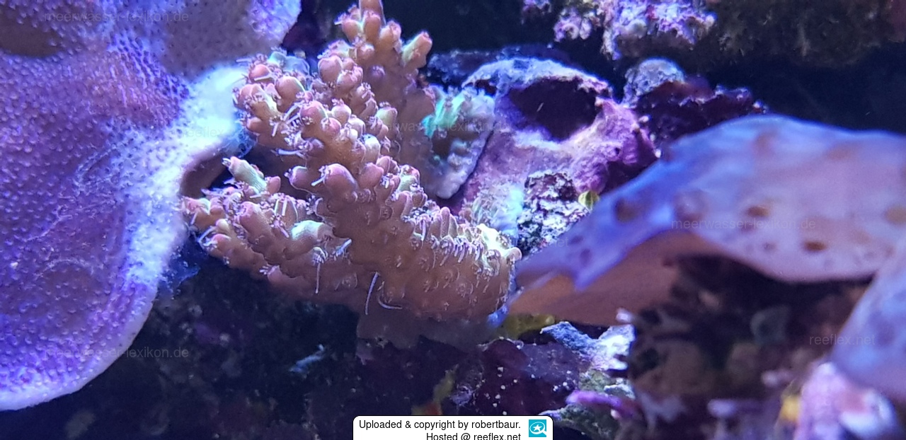 meine Strawberry Shortcake gegen die violette Montipora. Ich dachte die Monti ist schwächer als ich die Acropora hinpflanzte. Ist sich auch, jedoch wächst die Montipora schneller. Ich muss sie regelmäßig bändigen.