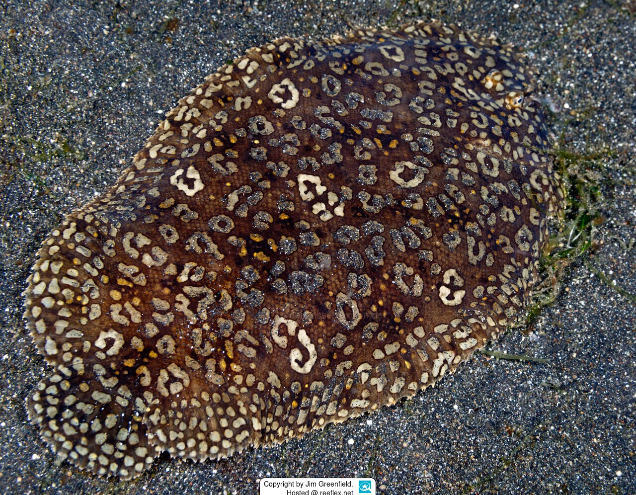 Auf einem steinigen Boden ist dieser Plattfisch mit seinen Flecken und Ozellen kaum zu entdecken.