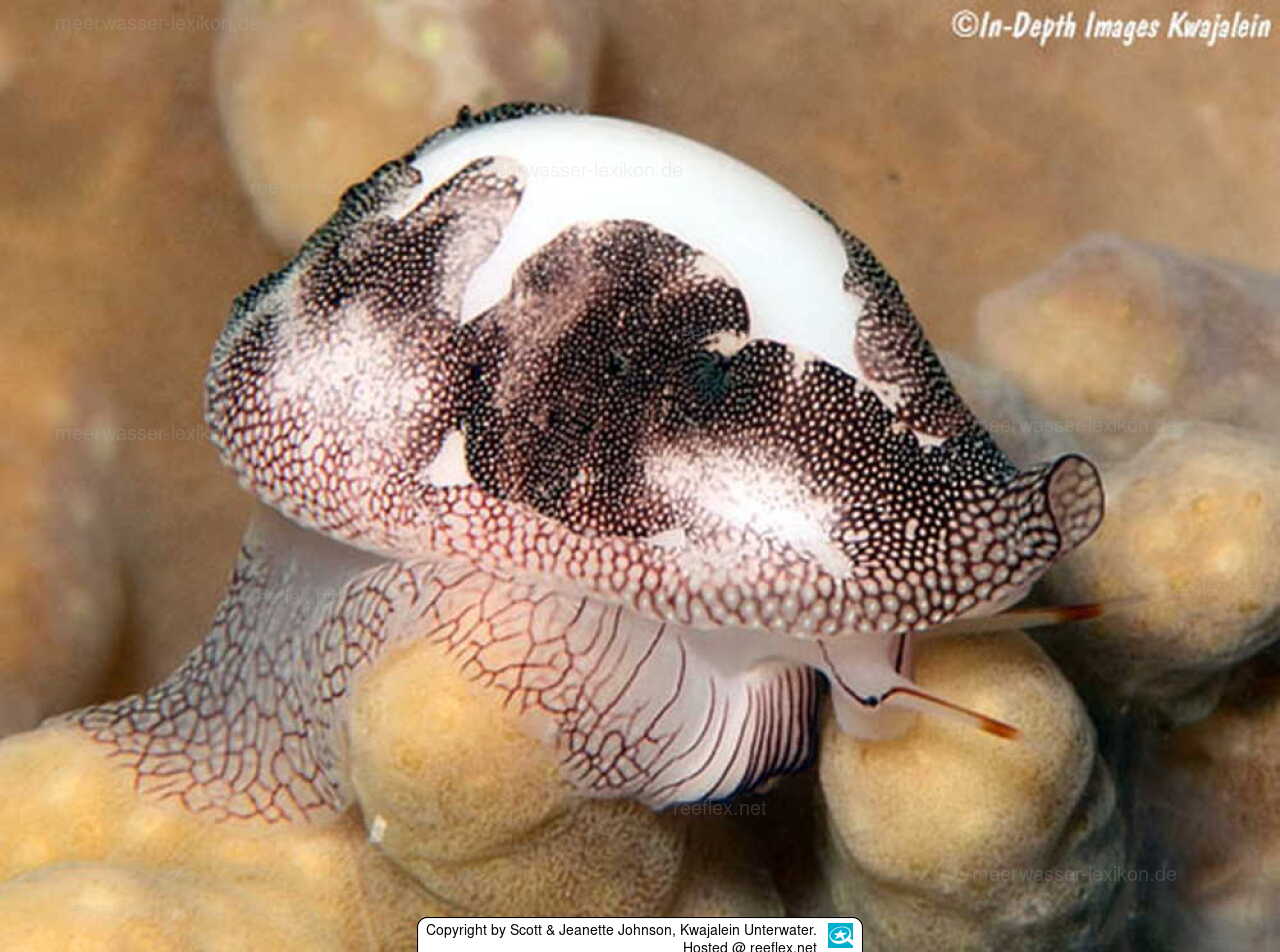 Der Siphon von Procalpurnus semistriatus hat eine gelblich-braune Grundfarbe mit einem deutlich rotbraunen Rand, während der Siphon bei Procalpurnus lacteus braun mit weißen Flecken ist.
