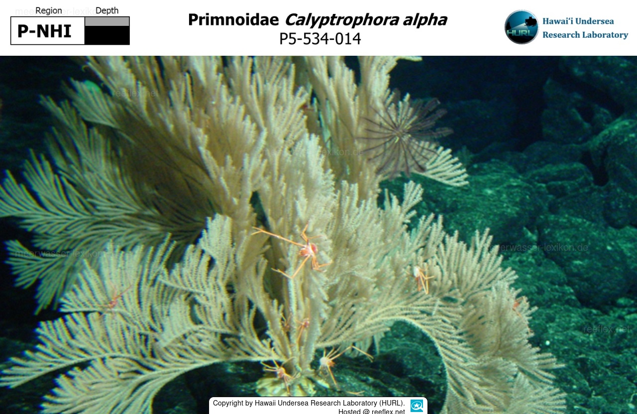 Die größte bekannte Kolonie der Tiefwassergorgonie Calyptrophora alpha war 54cm hoch und 28 cm breit, die Polypen waren zwischen 2,2cm - 2,4cm lang.
