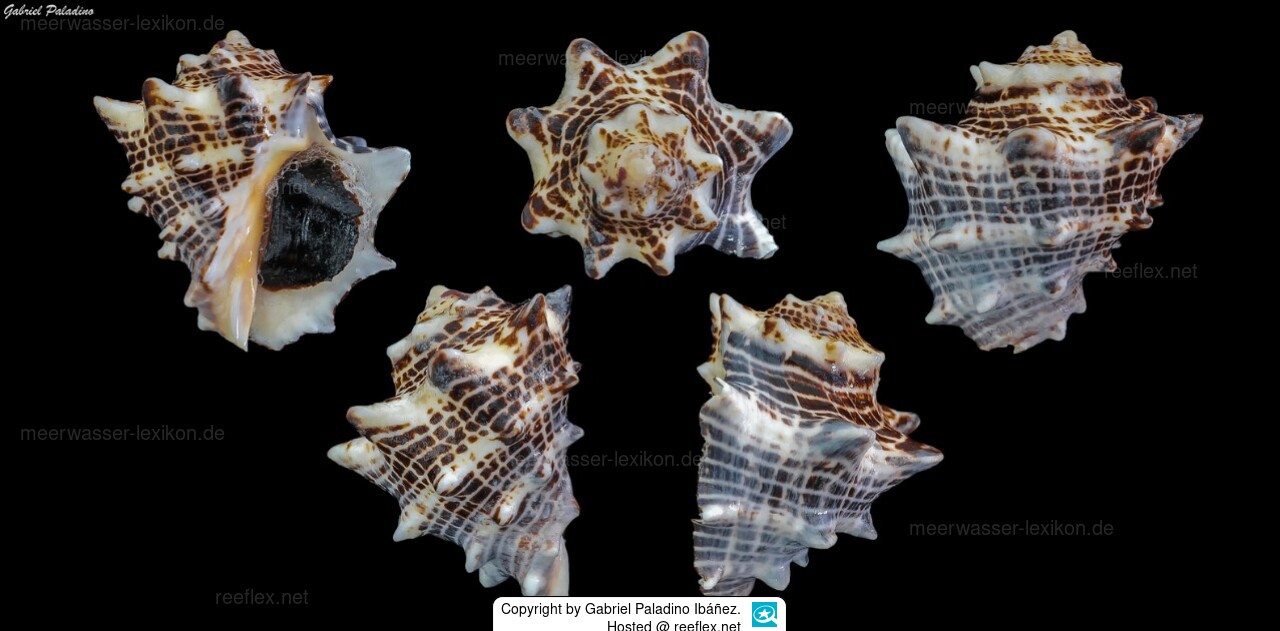Eine Schnecke aus der Familie Muricidae, die aufgrund der mehr oder weniger stark ausgeprägten stacheligen Gehäuse als Stachelschnecken bezeichnet werden. Mitglieder der Familie besitzen ein horniges Operculum zum Verschließen der Gehäuseöffnung. Die kleine bis große Schnecken sind weltweit verbreitet, kommen jedoch am stärksten in den Tropen auf oder nahe von Korallenriffen vor. Die räuberischen Schnecken ernähren sich von Wirbellosen, wobei sie ihre Beute mit einem Nervengift. Einige Arten bilden einen Schleim, aus dem früher Purpur-Farbstoff gewonnen wurde. Muricidae ist die größte Familie von Meereschnecken.