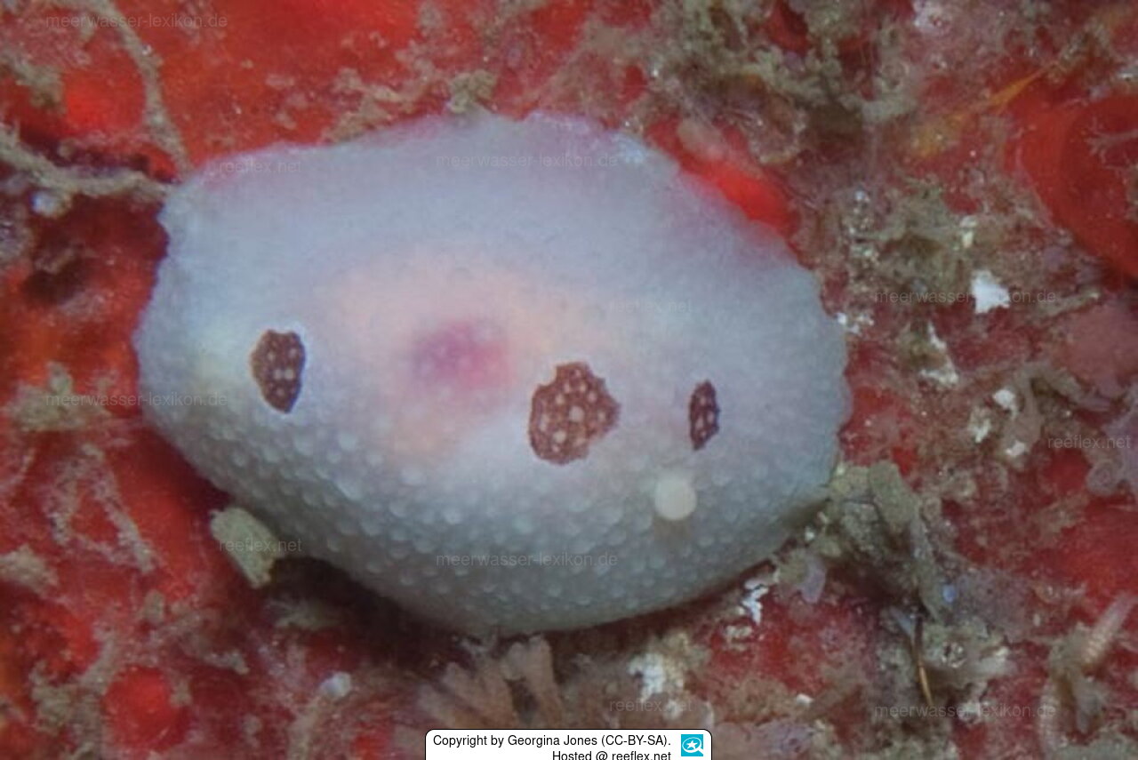 Die Dreipunkt Aldisa ist eine hellbraune Nacktschnecke mit warziger Haut und drei braunen Flecken, die wiederum mit helleren Flecken gesprenkelt sind. Aldisa trimaculata hat acht Kiemenfedern, die um den After angeordnet sind. Die Rhinophoren sind perfoliert.