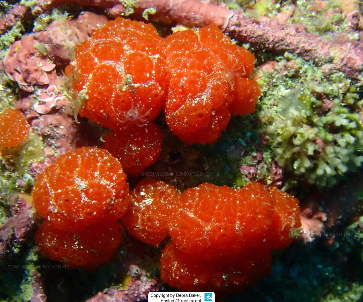 Diese Seescheide fällt zunächst durch ihre knallige Farbe, einen orange-rötlichen Ton besonders auf, zum anderen verwirrt sie Menschen, die im Wasser eine schlangenförmige, längliche Struktur entdecken, und diese zuerst als eine Art von Schlange identifizieren.