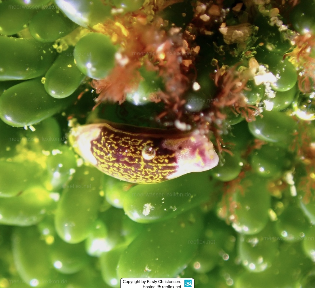 Beschreibung Ilbia ilbi : Dunkelviolett mit weißen Flecken und gelben Linien und Punkten. Der Kopfschild scheint mit dem Mantel verwachsen zu sein, und Parapodien fehlen. Kiemen sind nicht sichtbar.