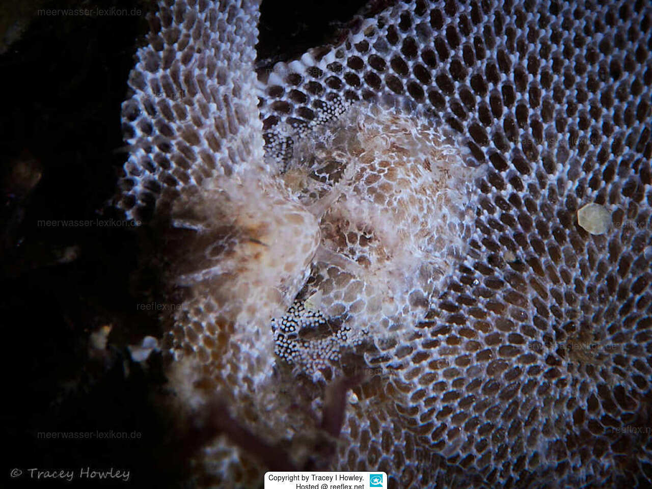 Ceratodoris trypomandyas ist eine nur wenige Millimeter kleine, extrem kryptische Nacktschnecke. Sie ähnelt nicht nur Moostierchen, sondern lebt auf diesen und ernährt sich von ihnen. Der Laich wird als Spirale ebenfalls auf Moostierchen abgelegt. Ihre bröunlichen Flecken passen perfekt zur Optik der Moostierchen und machen die winzige Nacktschnecke darauf fast unsichtbar.