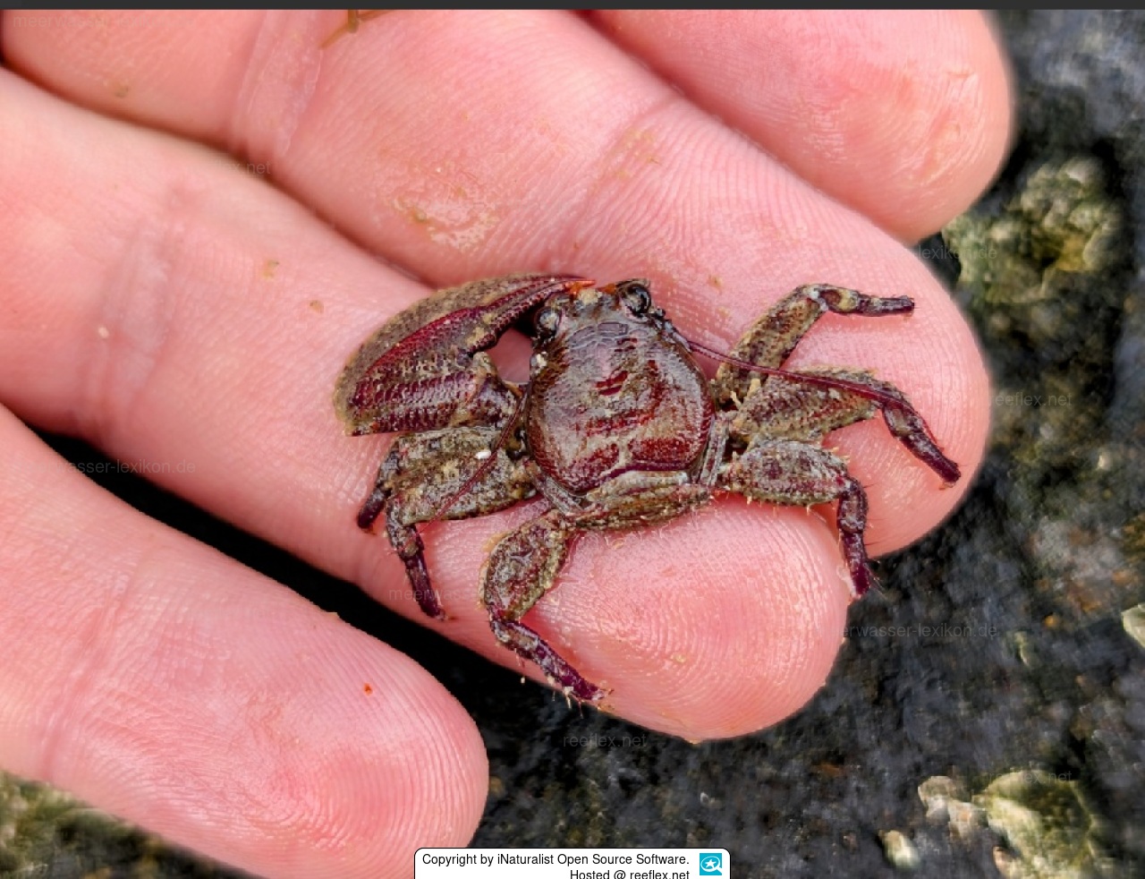 Bei lebenden Tieren sind Panzer und Chelipeden dunkelbraun oder grünlich-braun.