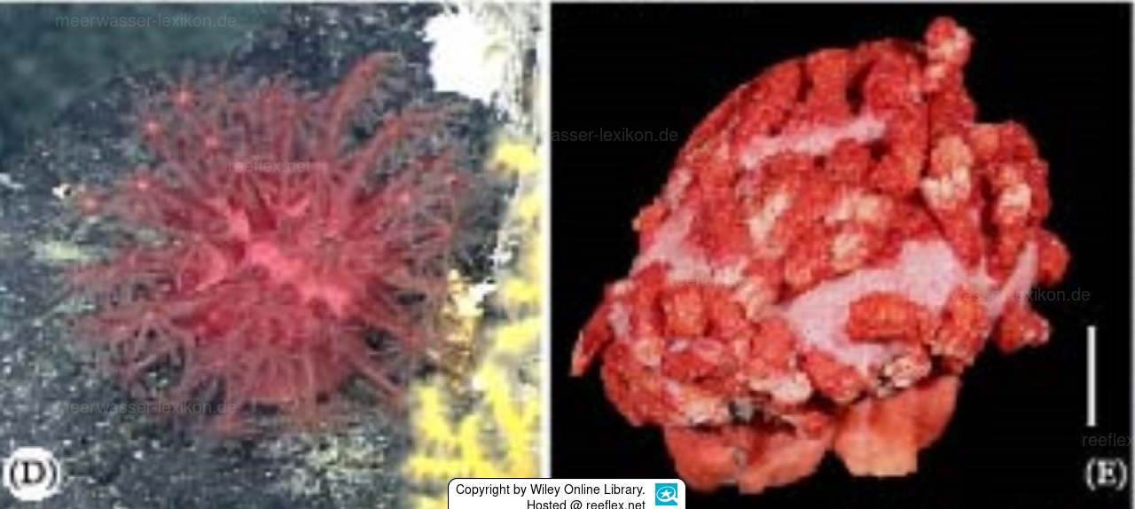 Farbe: Die Kolonien sind sowohl im lebenden Zustand als auch nach der Konservierung rot