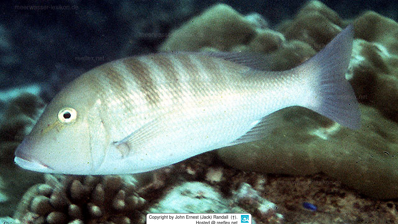 Der Körper des Schnappers ist gelblich-bronzefarben oder grau, ventral heller, manchmal mit drei bronzefarbenen Streifen an den unteren Seiten und sieben bis neun dunklen Streifen an den oberen Seiten.