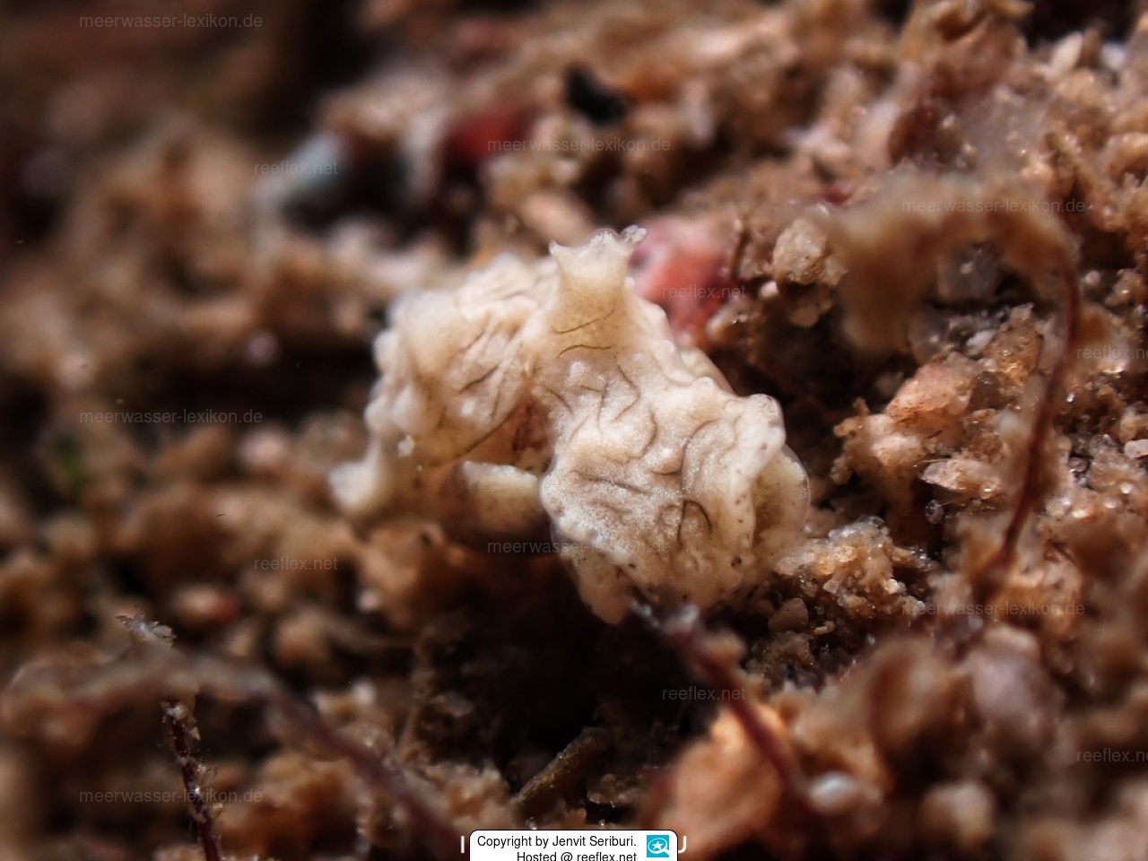 Beschreibung Niparaya sp.04: Die Körpergrundfarbe ist beige mit dünnen grünlichen, kurzen Linien.