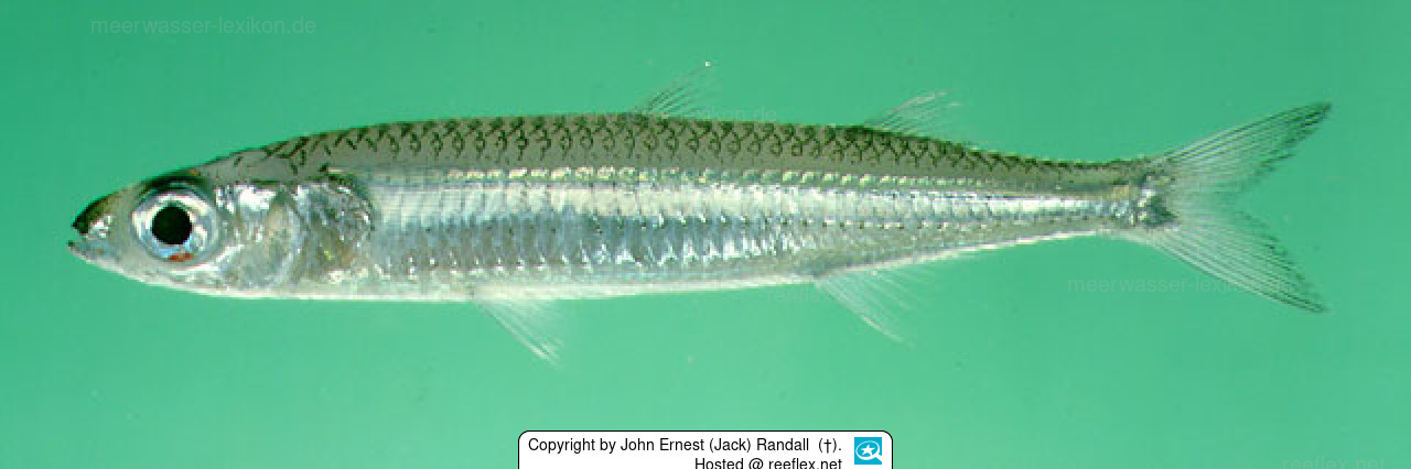 Der ventrolaterale Körper ist mit kleinen schwarzen Punkten; versehen, die Schnauze und Brustflossenbasis ist schwärzlich und die Flossenmembranen sind hyalin.