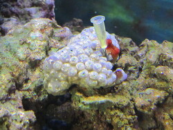 Alternativ kann das Verbringen von befallenen Kolonien in ein Becken mit frisch angesetztem Meerwasser hilfreich sein.