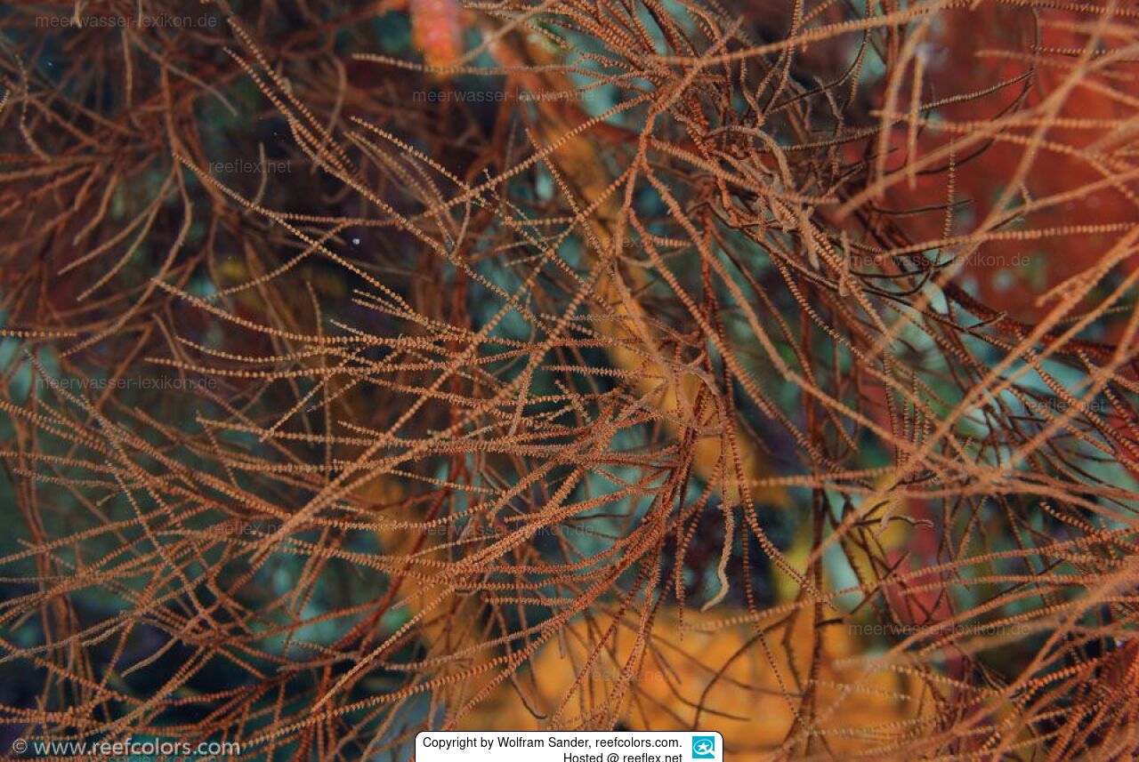 Der Name Schwarze Koralle stammt von der schwarzen Färbung des hornartigen inneren Korallenskeletts.