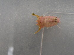 Leslie Harries bestimmte die Fotos wie folgt:"...is clearly an isopod in the family Sphaeromatidae. Males have long tail fins; females & juvenile males don't. "