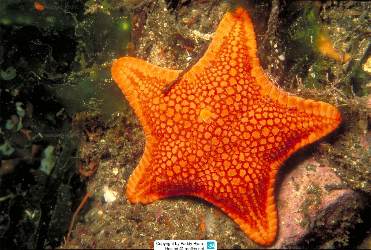 Die Oberseite des Seesterns ist orange oder kirsch-rot, die Unterseite cremefarben.Unter jedem Arm befinden sich zwei glasartige Stacheln, bei fünf Armen hat der Seestern insgesamt 10 dieser speziellen Stacheln. Die Form des Seesterns kann etwas variieren, die Bestimmung über die 10 glasartigen Stacheln ist ein jedoch eindeutiges Merkmal.