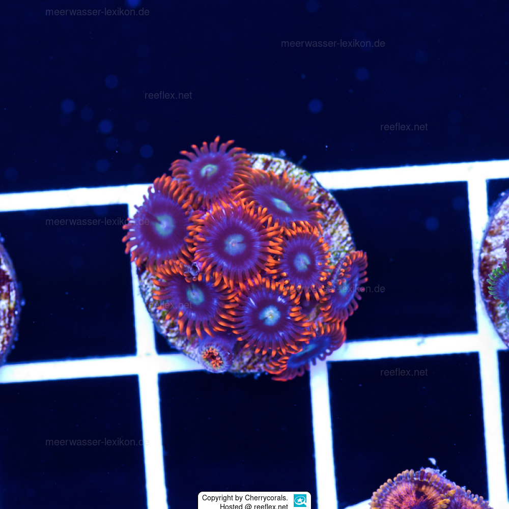 Diese wunderschöne Krustenanemone kommt unter dem Handelsnamen Zoanthus "Sky Fires" in den Handel.
