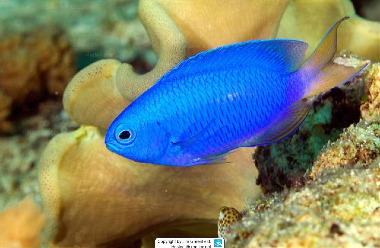 Systematik: Biota > Animalia (Kingdom) > Chordata (Phylum) > Vertebrata (Subphylum) > Gnathostomata (Superclass) > Pisces (Superclass) > Actinopterygii (Class) > Perciformes (Order) > Pomacentridae (Family) > Pomacentrus (Genus) > Pomacentrus coelestis (Species)