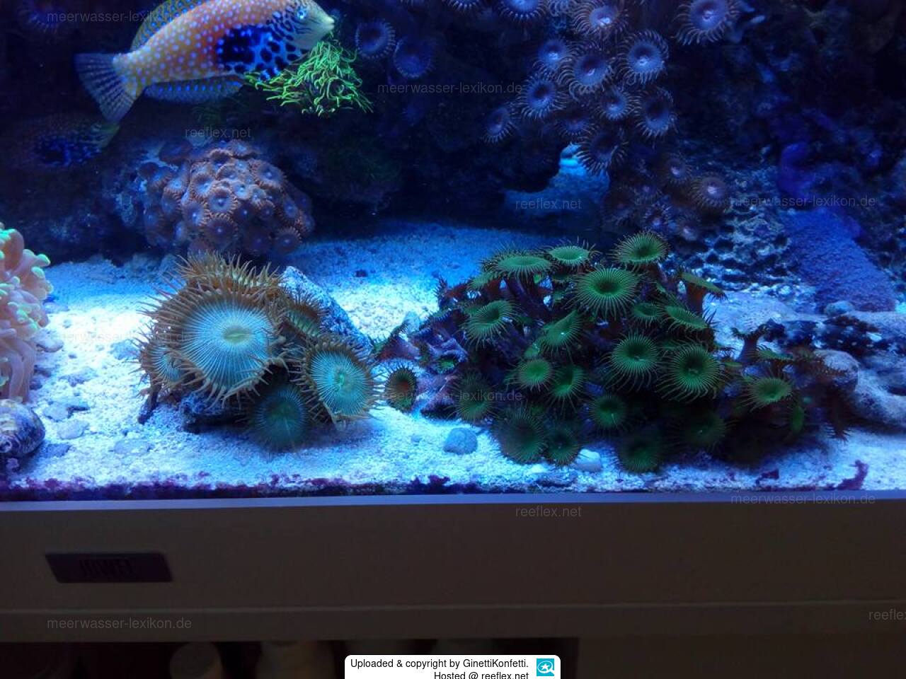 Habe diese hübsche Kruste bei meinem Händler erworben. Sie fiel mir aufgrund ihrer riesigen Polypen direkt ins Auge. Ich habe einige Arten an Palythoas im Aquarium aber diese sieht anders aus.